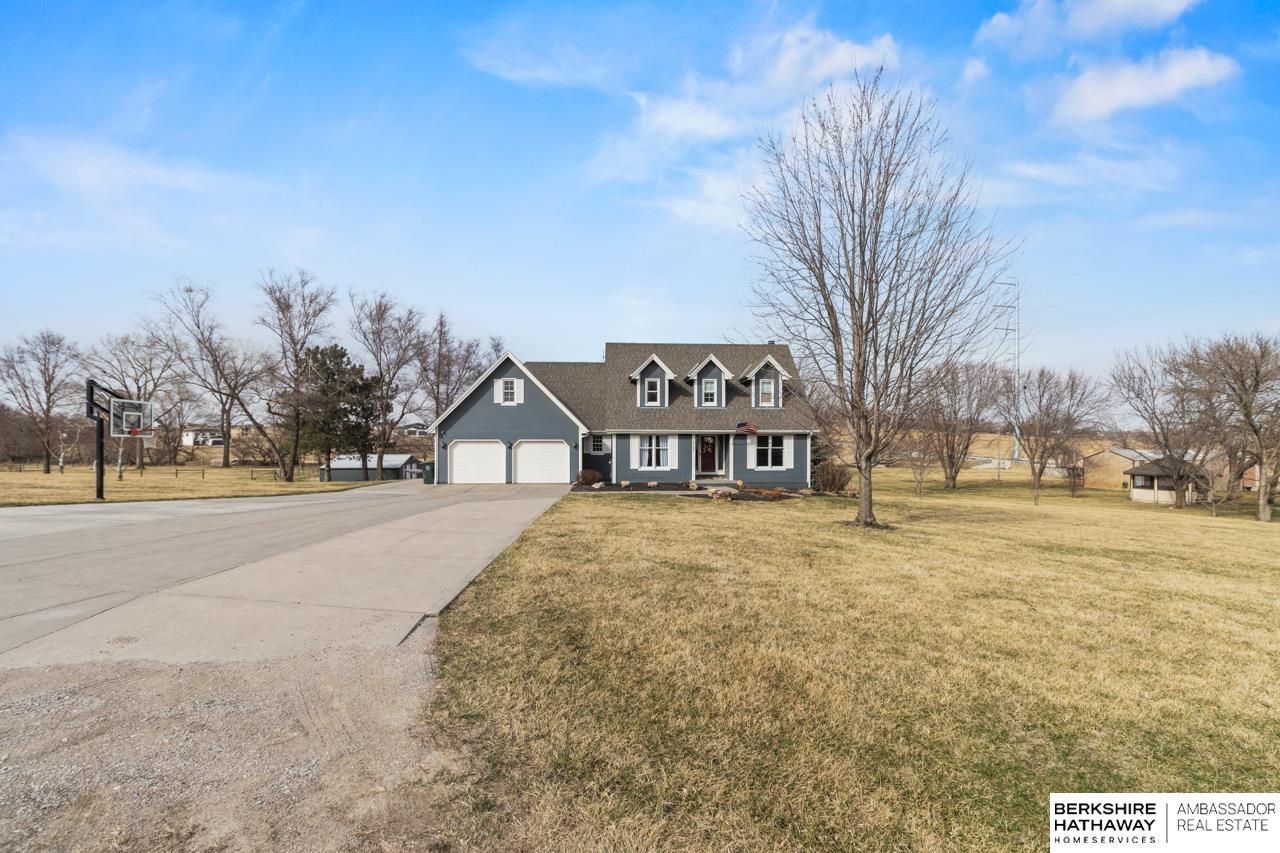 RARE GRETNA ACREAGE! Nestled on 3+ scenic acres, this beautifully updated two-story offers peaceful country living just minutes from Hwy 370, I-80, shopping, dining, and schools. The recently remodeled main floor features a stunning designer kitchen, inviting family room, elegant dining space and office. New carpet adds a fresh feel to the home. The spacious primary suite includes two walk-in closets and a spa-inspired bath with a whirlpool tub and newly updated shower. The walkout lower level provides incredible versatility with a large rec space, cozy fireplace, theatre and flex room. Step outside to enjoy the beauty of the property from the composite deck overlooking mature trees and the creek, plus refreshed landscaping, pool and a 24 x 54 insulated barn. Goats and chickens are welcome, making this the perfect setup for acreage living. Properties like this rarely become available in the desirable Gretna school district! Your opportunity for acreage lifestyle starts here.